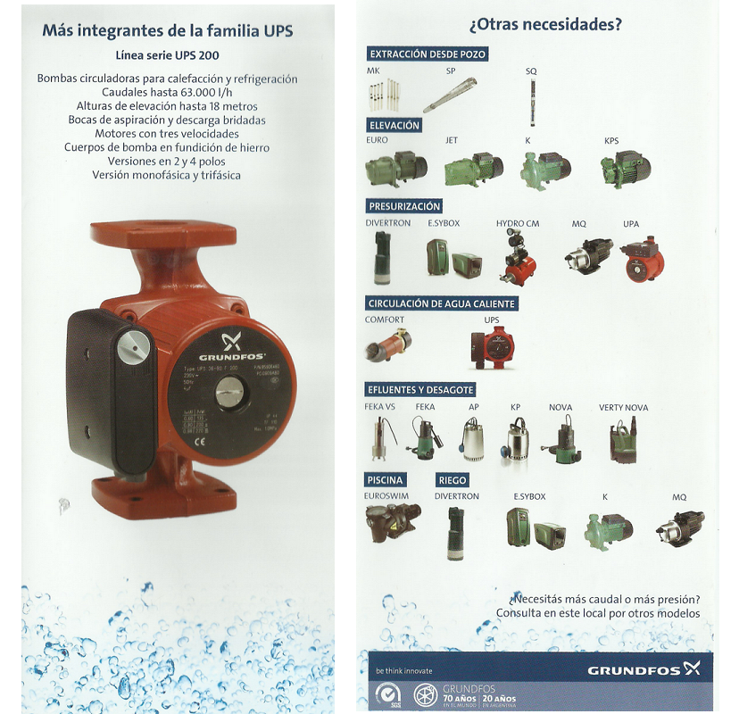 Contamos con toda la linea Grundfos: bombas de elevación, de presurizacion, extracción, desagote